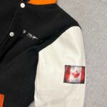 Make a bold statement with the Tilt Hockey Varsity Jacket. Featuring a premium black-and-orange colorway, this jacket combines a classic varsity look with hockey-inspired details. The front showcases the iconic Tilt Hockey logo, while the sleeves feature standout patches, including a Canadian flag and a Tilt Hockey badge. Constructed with a durable wool blend body and leather sleeves, this jacket is built for both style and comfort. Whether you’re rinkside or hitting the streets, this jacket screams hockey passion.